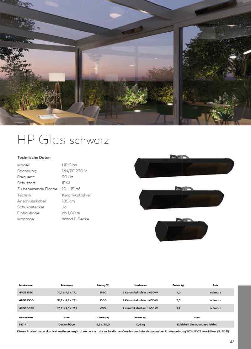 | HPGS1950 | 76,7 x 9,5 x 17,1 | 1.950 | 3 Keramikstrahler a 650 W | 4,6 | schwarz |